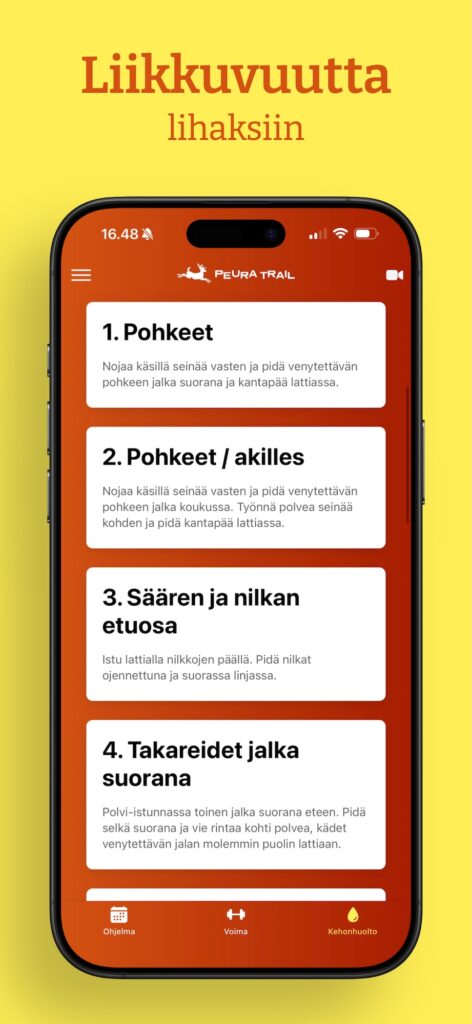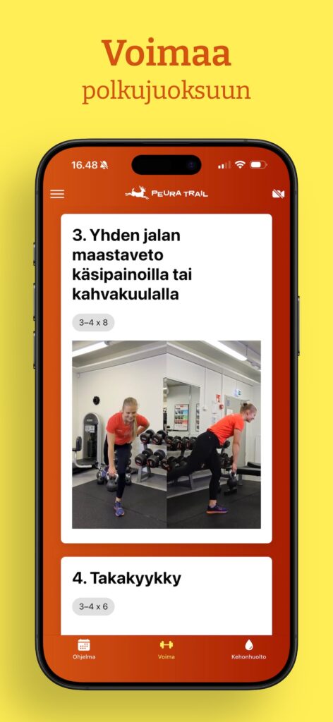 Harjoitusohjelman tueksi Juuso on suunnitellut erityisesti polkujuoksijoille räätälöidyn voimaharjoituksen sekä ohjeet kehonhuoltoon.